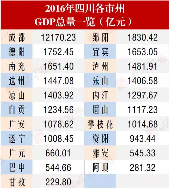 就GDP而言,老牌經(jīng)濟(jì)強(qiáng)市成都、綿陽(yáng)、德陽(yáng)的經(jīng)濟(jì)總量仍然盤踞“市州經(jīng)濟(jì)總量”前三名,其中成都地區(qū)最高,超過(guò)12170億元,是地區(qū)生產(chǎn)總值唯一達(dá)五位數(shù)的市州。
